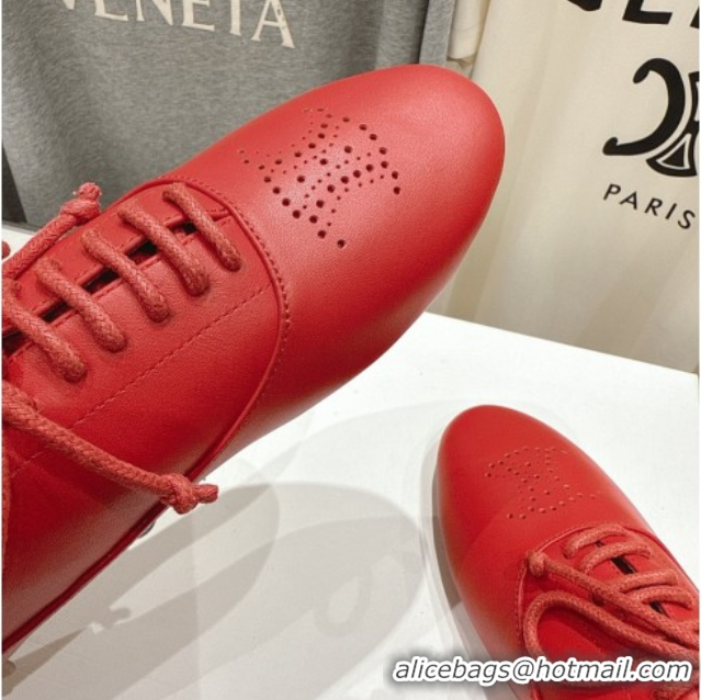 Grade Quality Celine Lise Perforated Triomphe Richelieu Laced-up Shoes in Calfskin Leather Red 1024027