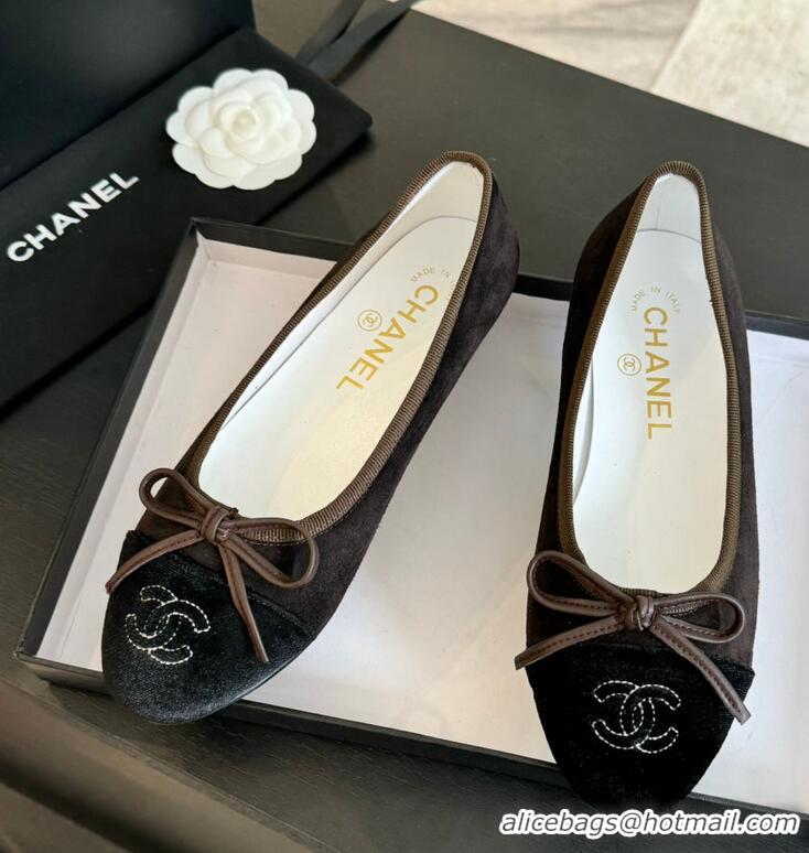 Grade Quality Chanel CC Ballet Flat With Bow Suede CH1023 Chocolate/Black Canvas