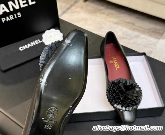 Crafted Chanel Calfskin Leather Ballet Flats with Bloom CH122404 Black 2026