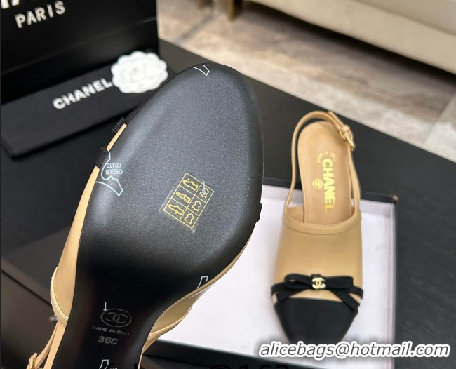Grade Quality Chanel Calfskin Leather & Grosgrain Slingbacks Pump 9cm with Bow G47021 Beige 2026