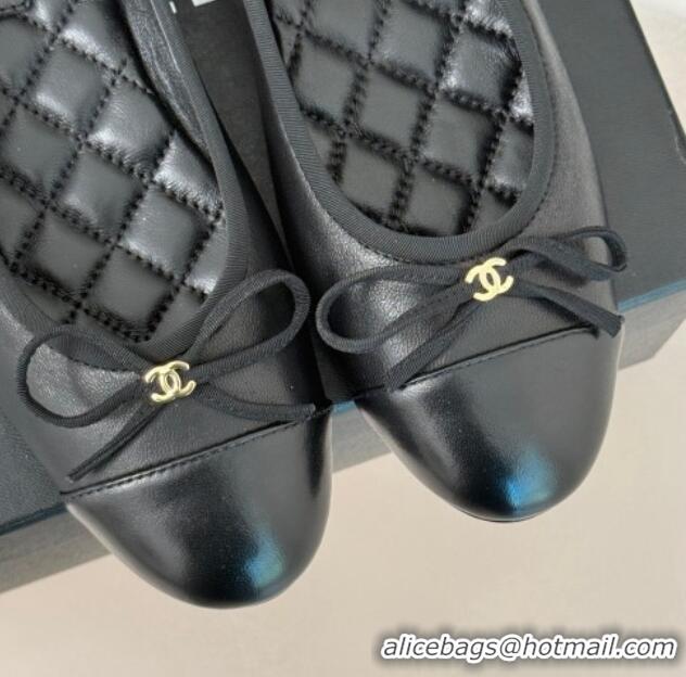 Good Product Chanel Lambskin Ballet Flats with Bow Black 0102112