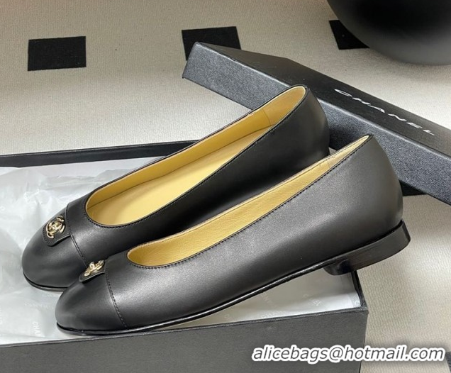 Stylish Chanel Lambskin Leather Ballets Flat with CC Tag and Round Toe Black 2025 G46441 1103036