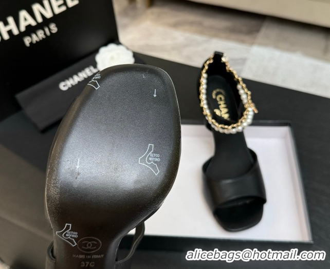 Grade Quality Chanel Lambskin Heel Sandals 8cm with Chain and Pearls Black 2025 G46658