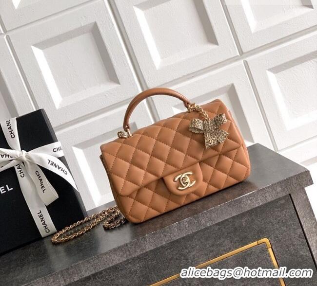 Grade Quality Chanel Lambskin Leather Mini Classic Flap Handbag With Top Handle and Bow Charm AS2431 Khaki 2026