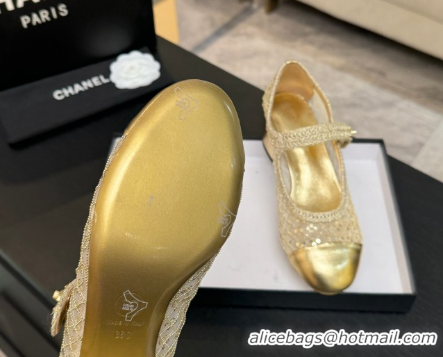 Grade Quality Chanel Mesh & Sequins Mary Janes Pumps CH122302 Gold 2026
