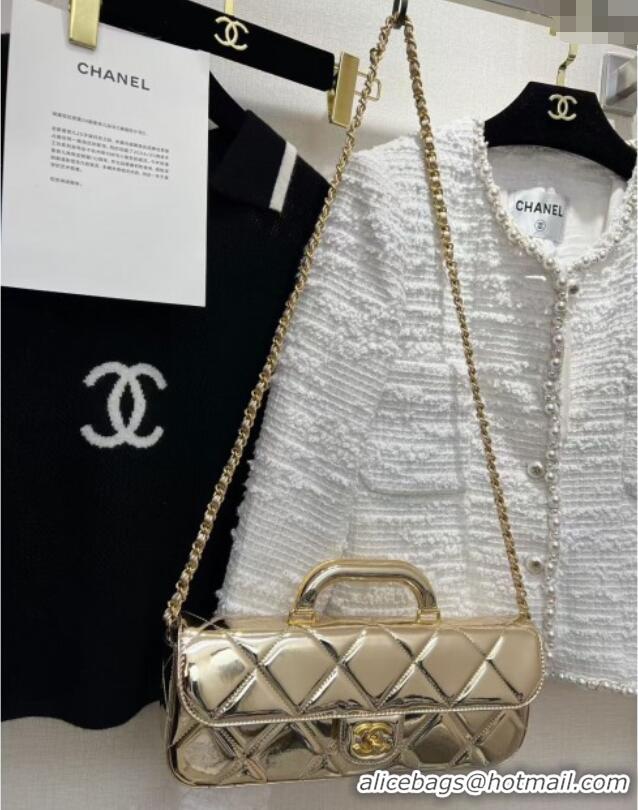 Grade Quality Chanel Metallic Mirror Calfskin Large Flap Bag with Top Handle AS5807 Light Gold 2025