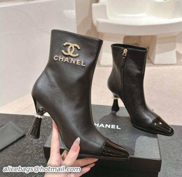 Popular Style Chanel Calfskin Ankle Boots with Charms Buckle Strap Black 016008