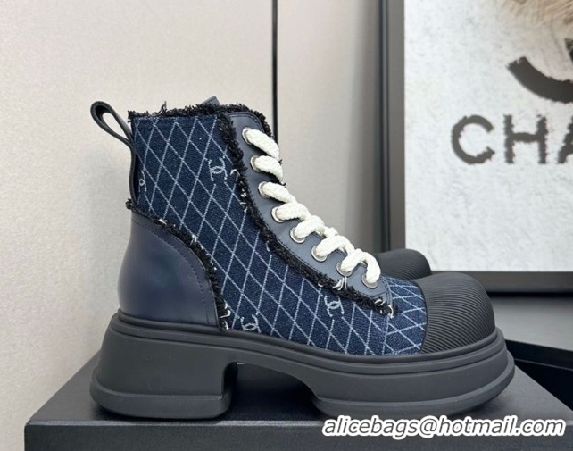 Grade Quality Chanel Quilted Denim and Fringe High Top Platform Sneakers Navy Blue 2025 CH110108