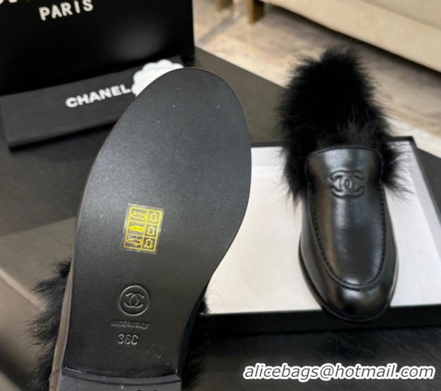Top Design Chanel Shiny Crumpled Lambskin & Shearling Loafers All Black G46534 1104061
