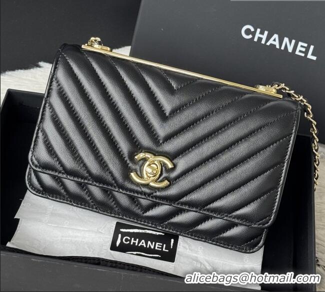 Inexpensive Chanel Lambskin Chevron Wallet On Chain WOC with Top Metal Band 6841V Black 2026