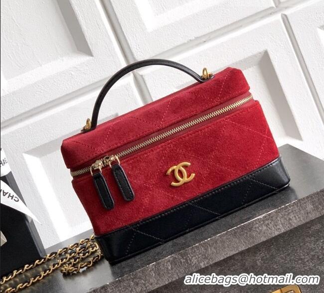> Chanel Handbag > Chanel 2026 Bags > Grade Quality Chanel Vanity with Chain in Suede Calfskin & Shiny Lambskin AP5186 Burgundy 2026