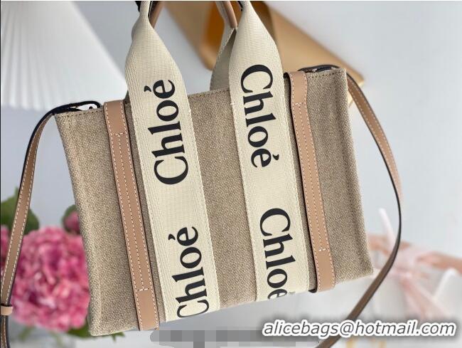 > Chloe Handbag > Grade Quality Chloe Small Woody Tote Bag in Linen Canvas and Calfskin Leather 1120 Beige 2025
