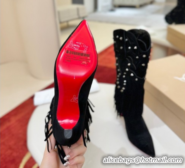 Grade Quality Christian Louboutin Santia Fringe Heel Ankle Boots 8.5cm in Suede Black 1030158