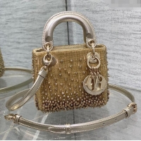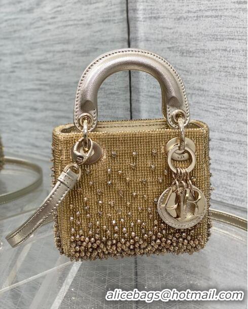 Top Quality Dior Metallic Calfskin Lady Dior Micro Bag with Bead Embroidery D8133 Gold 2024