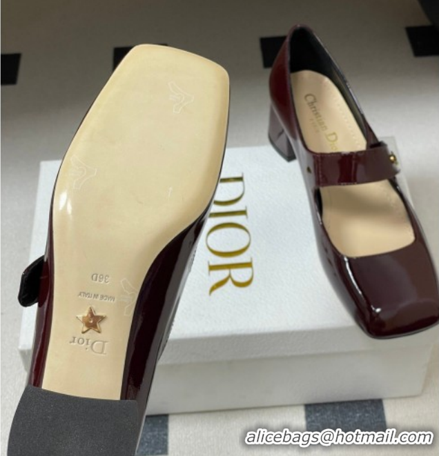 Shop Cheap Dior Patent Leather Mary Janes Pumps 4cm Dark Burgundy DR121704 1217072