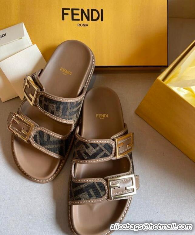 Buy Promotional Fendi Feel FF Fabric Slides F8523 Brown