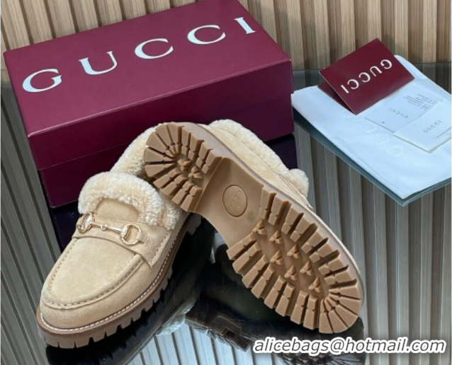 Classic Hot Gucci Wool and Suede Loafers with Horsebit Beige 1218037 2026