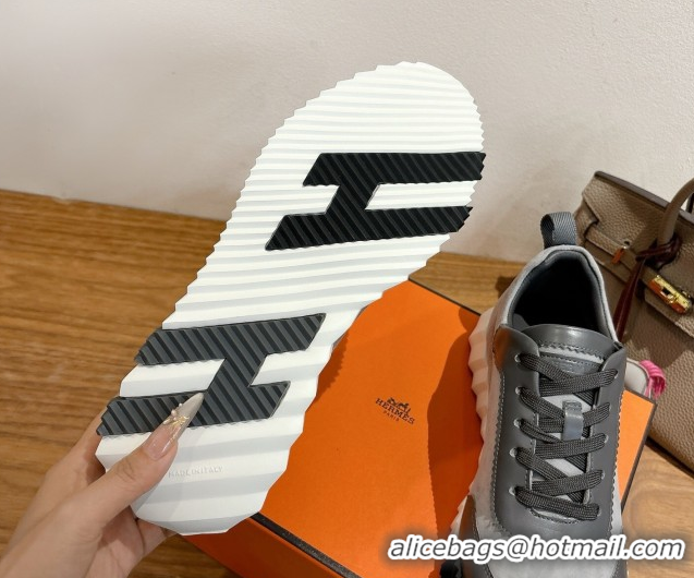 Good Quality Hermes Bouncing Sneakers in Suede and Calfskin Leather Dark Grey 1024013