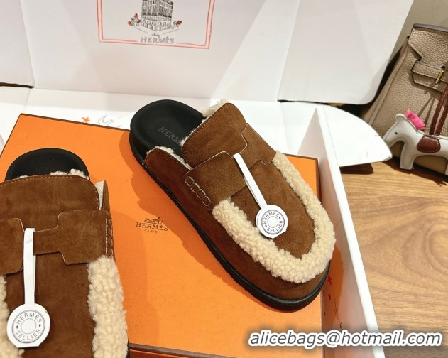 > Shoes Plaza > Hermes Shoes > Grade Quality Hermes Go Flat Loafers in Suede and Wool with H Strap Dark Brown 1023020
