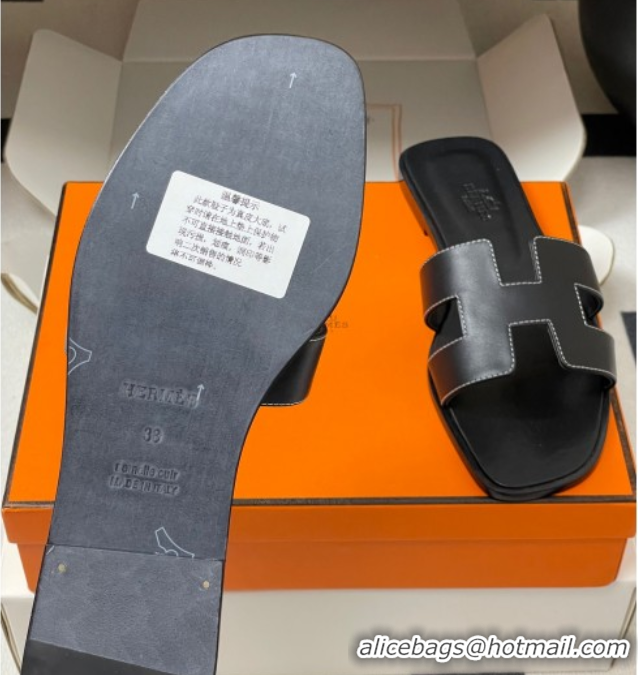 Big Discount Hermes Oran Classic Flat Slides Sandal in Smooth Calfskin Black 2025 H081803