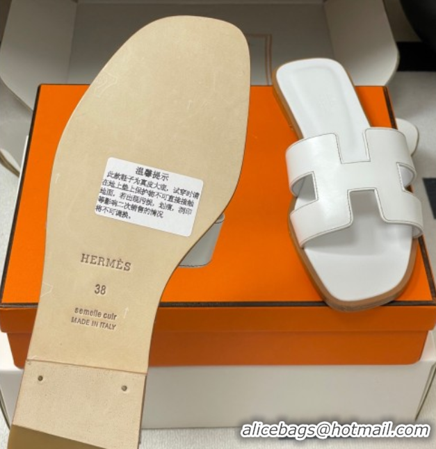Perfect Hermes Oran Classic Flat Slides Sandal in Smooth Calfskin White 2025 H081803