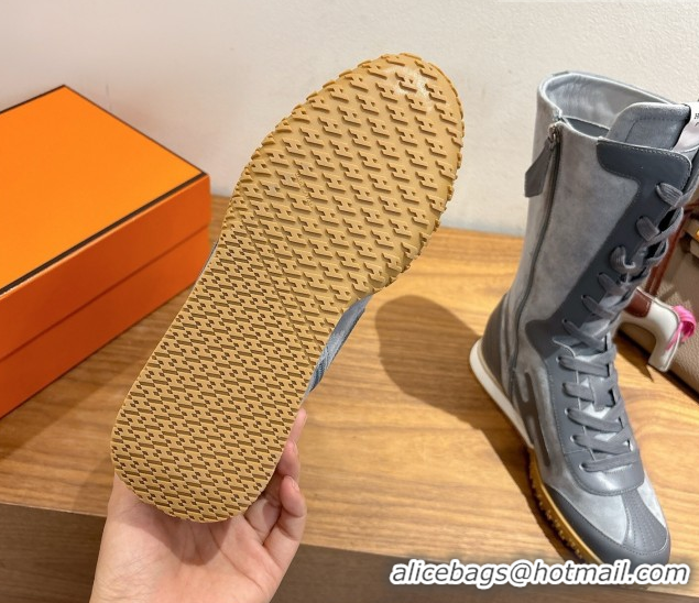 Sumptuous Hermes Suede and Calfskin Leather Sneaker Boots H122001 Dark Grey 2026