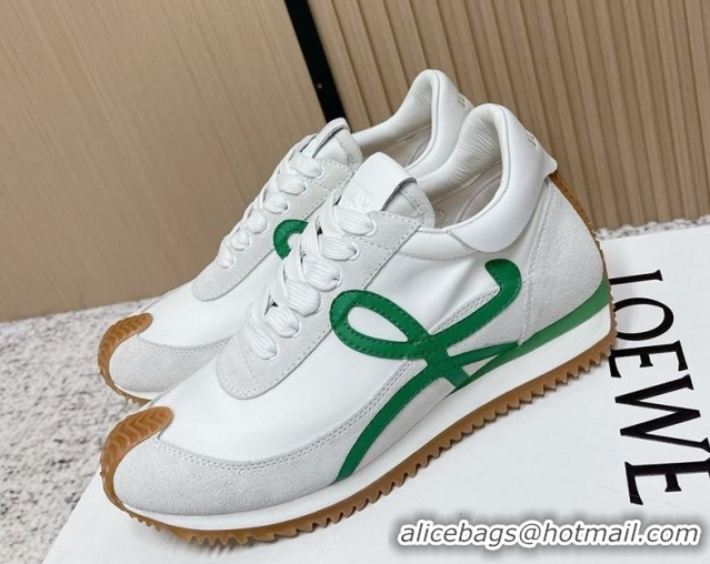 Grade Quality Loewe Flow Runner Sneakers in Nylon and Suede White/Green 0226048