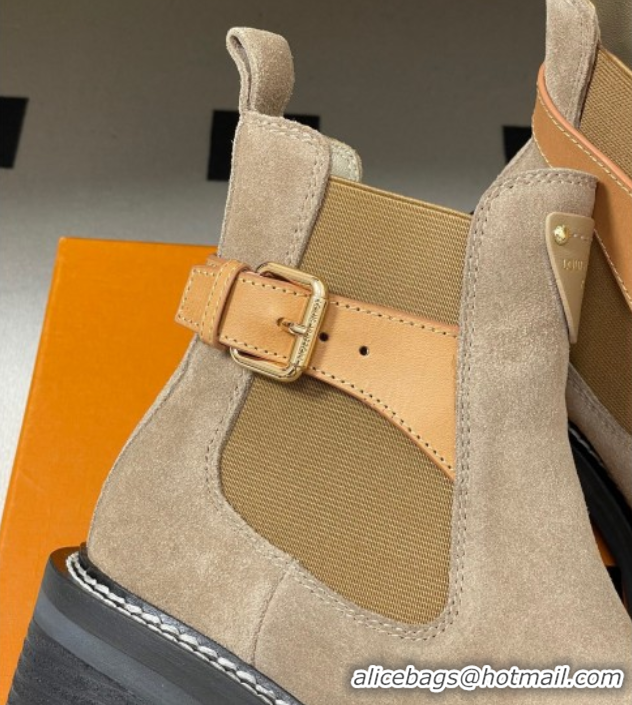 Top Grade Louis Vuitton LV Beaubourg Ankle Boots 4cm in Suede Beige 1ACKCP 0829124
