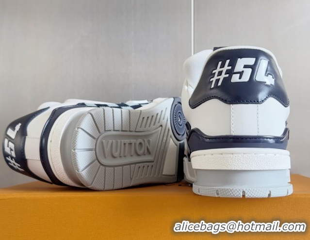 Grade Quality Louis Vuitton LV Trainer Sneakers in Leather and Damier Canvas 1AIN14 White/Blue