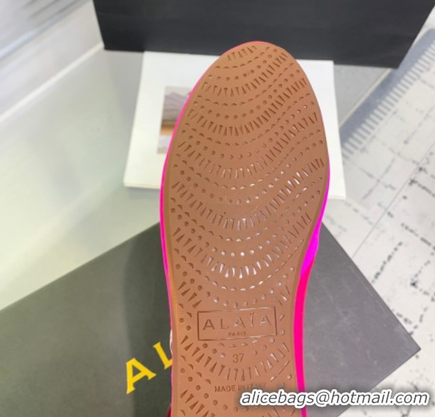 > Shoes Plaza > Alaia Shoes > Grade Quality Maison Alaia Criss Cross Ballet Flats in Satin Neon Pink 0219015