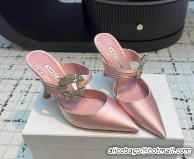 Sumptuous Manolo Blahnik Crystals Embellished Mules in Satin 9cm Heel 5112517 Pink 2026