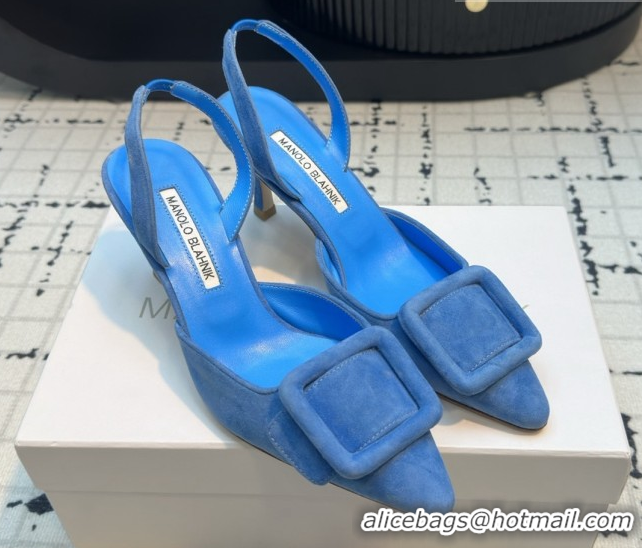 Grade Quality Manolo Blahnik MAYSLI Slingback Pumps with Buckle in Blue Suede 5112520 2026