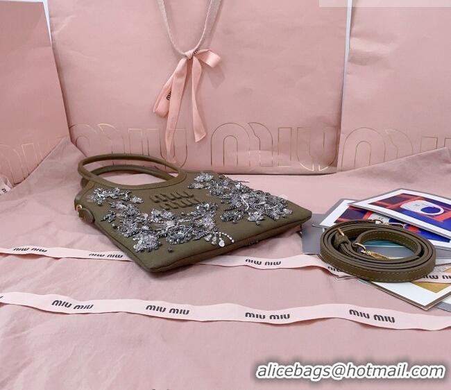 Cheapest Miu Miu IVY embroidered gabardine bag 5BA281 Olive 2026