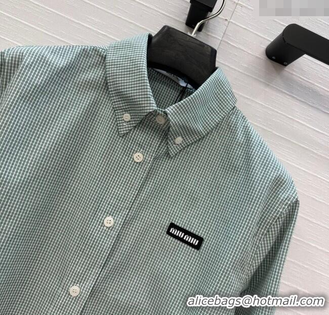 > Clothes Online > Miu Miu Clothes > Reasonable Price Miu Miu Plaid Cotton Shirt MM111432 Light Green 2025