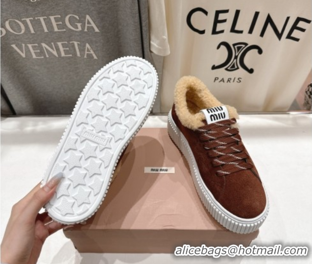 Grade Quality Miu Miu Suede and Shearling Platform Sneakers Brown 5E389E 1025066 2025