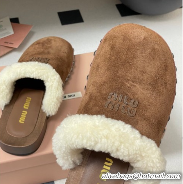 > Shoes Plaza > Miu Miu Shoes > Duplicate Miu Miu Suede and Wool Clogs Mules Brown MIU082609 0826056