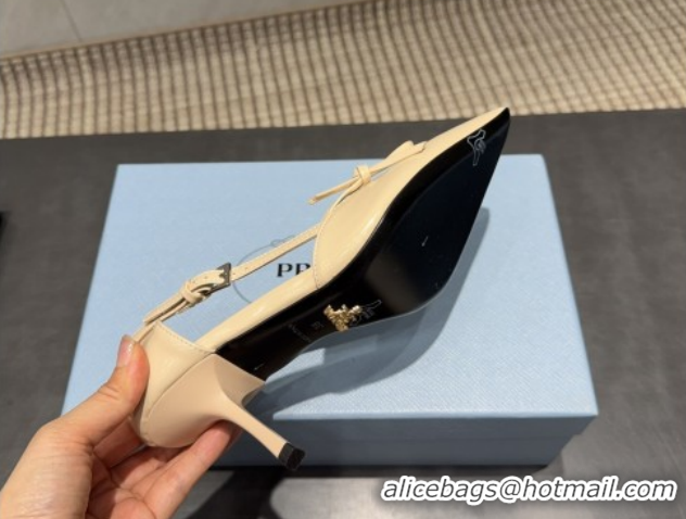 Grade Quality Prada Patent Leather Heel Pumps 7.5cm with Bow Buckle Beige PR120602 1206012 2026