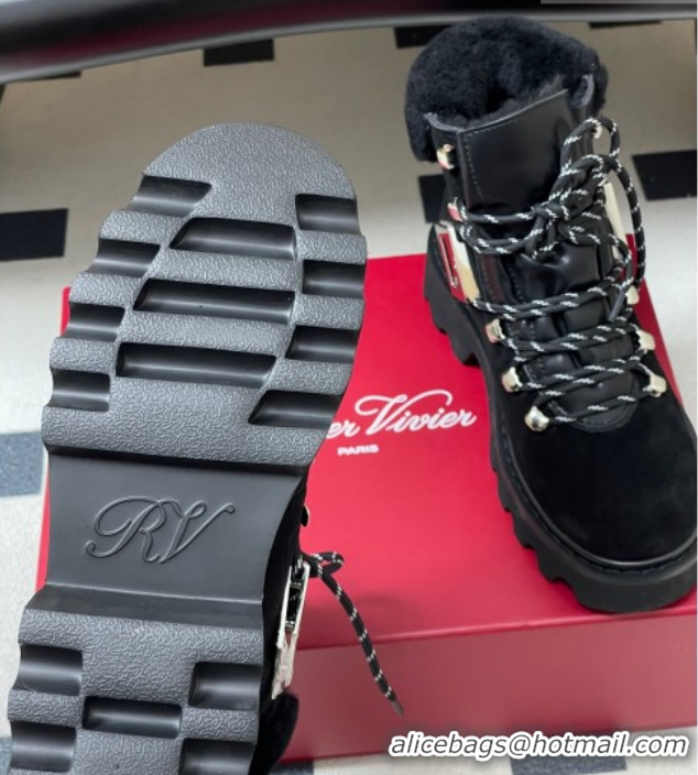 Grade Quality Roger Vivier Viv' Rangers Truck Booties 5cm in Suede and Wool Black RV121203 1212020 2026
