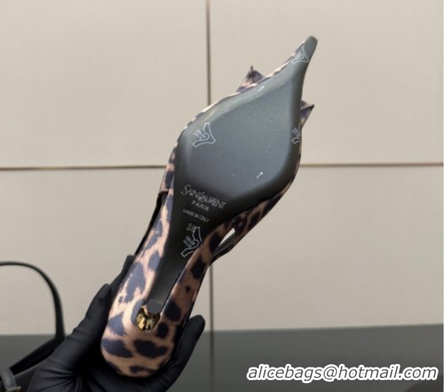 Best Grade Saint Laurent DAKOTA Heel Slingbacks Pump 5.5cm in Leopard Satin Muslin with Square Rose Beige 1212081