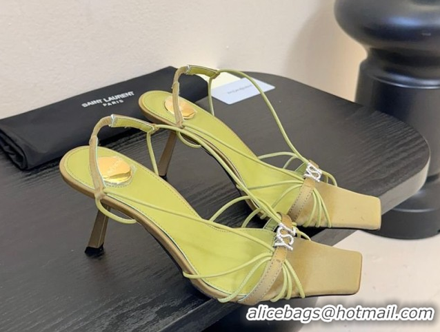 Top Design Saint Laurent Jerry Heel Sandals 8cm in Satin with Strap Green 2026 SL022403