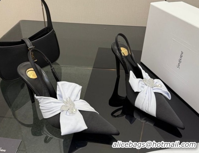 Grade Quality Saint Laurent Dove Slingback Pumps 10.5cm in Satin with Bow Black/White 2026 SL022404