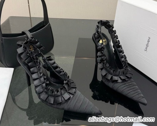 Grade Quality Saint Laurent MADELEINE Slingbacks Pump 10.5cm in Silk Taffeta Black2 2026 867272