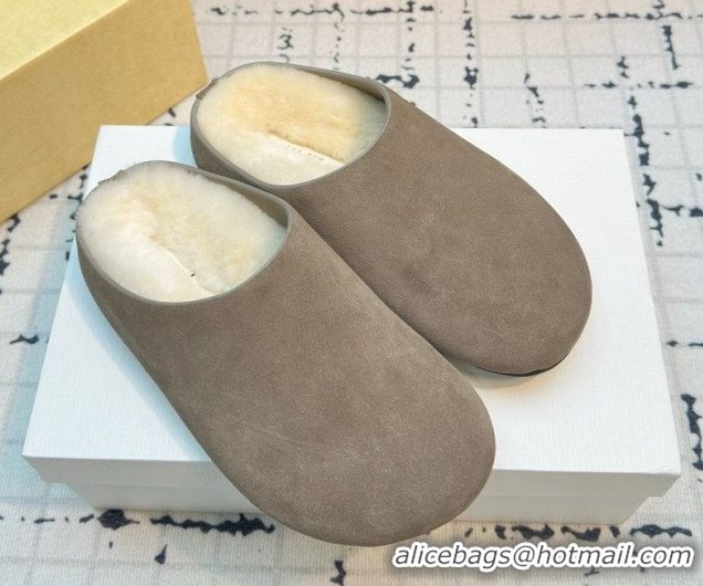 Your Position: Home > Shoes Plaza > The Row Shoes > Best Price The Row Hudson Flat Mules in Suede and Wool Grey 1208129 2026