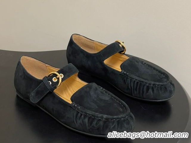> Shoes Plaza > The Row Shoes > Grade Quality The Row Suede Loafers with Buckle Strap TR120801 Black 2026