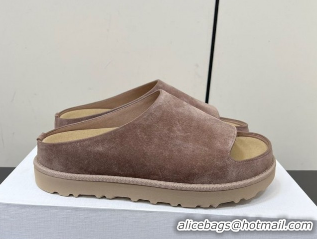 Grade Quality The Row Suede Platform Slides Sandal Taupe 0604105
