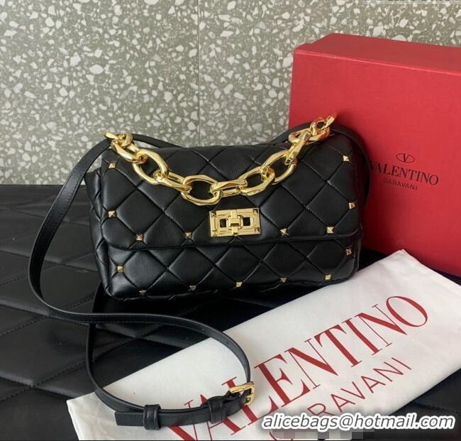 Grade Quality Valentino Rockstud Spike Shoulder bag in patchwork nappa leather with studs 5048 Black 2024
