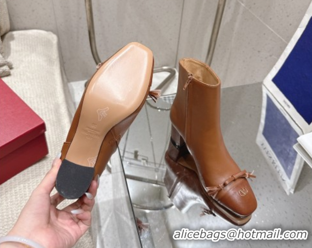 Grade Quality Valentino VALET DU ROI Heel Ankle Boots 6.5cm in Goatskin Leather with Bow Brown 1028017