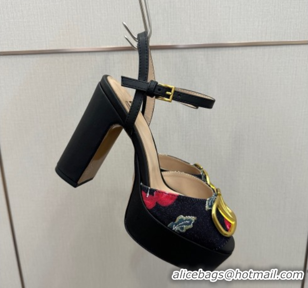 Best Grade Valentino VLogo Signature Cherryfic Platform Sandals in Denim and Leather Black 1028003