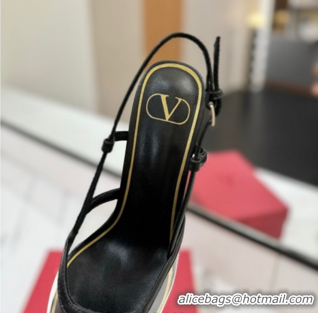 Grade Quality Valentino VLogo Signature Slingback Pumps 8cm in PVC and Calfskin Black VA082105