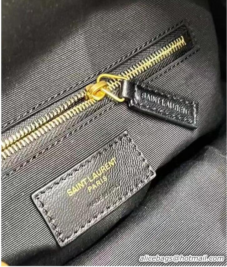 SAINT LAURENT MONOGRAM BACKPACK FEATURING Y-QUILTED OVERSTITCHING, A FRONT POCKET WITH MAGNETIC FLAP DECORATED WITH INTERLACED METAL YSL INITIALS AND ADJUSTABLE LEATHER SHOULDER STRAPS.
